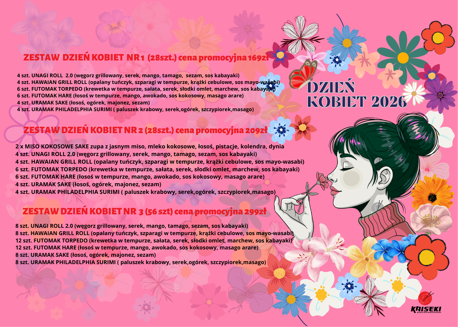 NA DOWOLNY ZESTAW NA WYNOS Z MENU NA DZIEŃ KOBIET- UZYSKASZ CENĘ PROMOCYJNĄ ORAZ GRATIS WINO CHOYA SILVER 0,5L*